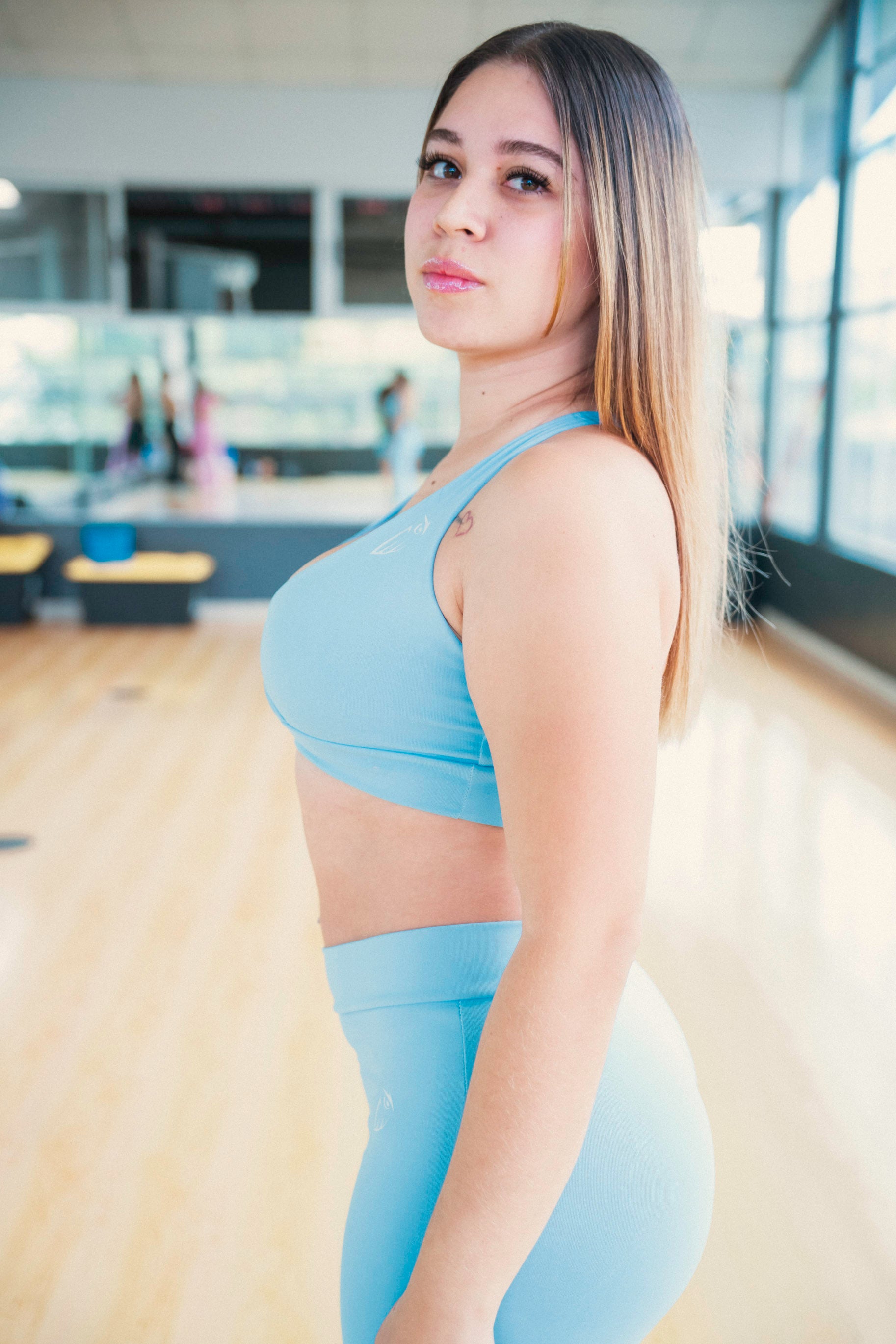 El Top Her Flare está confeccionado en tela Suplex premium, una estructura diseñada para ofrecer una combinación equilibrada de suavidad, elasticidad y soporte. Su composición permite un ajuste cómodo y firme que se adapta de forma natural a la figura, brindando seguridad y libertad de movimiento tanto en entrenamientos como en el uso diario.
